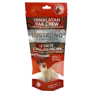 These natural chews originate from an ancient Himalayan recipe in Nepal. Only Yak Milk, Lime & Sea Salt are used to make these delicious cheese chews, and they contain no preservatives! As the cheese hardens, it becomes lactose-free, making them easy to digest. Our Yak cheese chews are flown directly from Nepal every month, ensuring freshness.