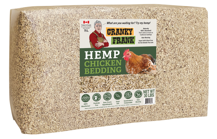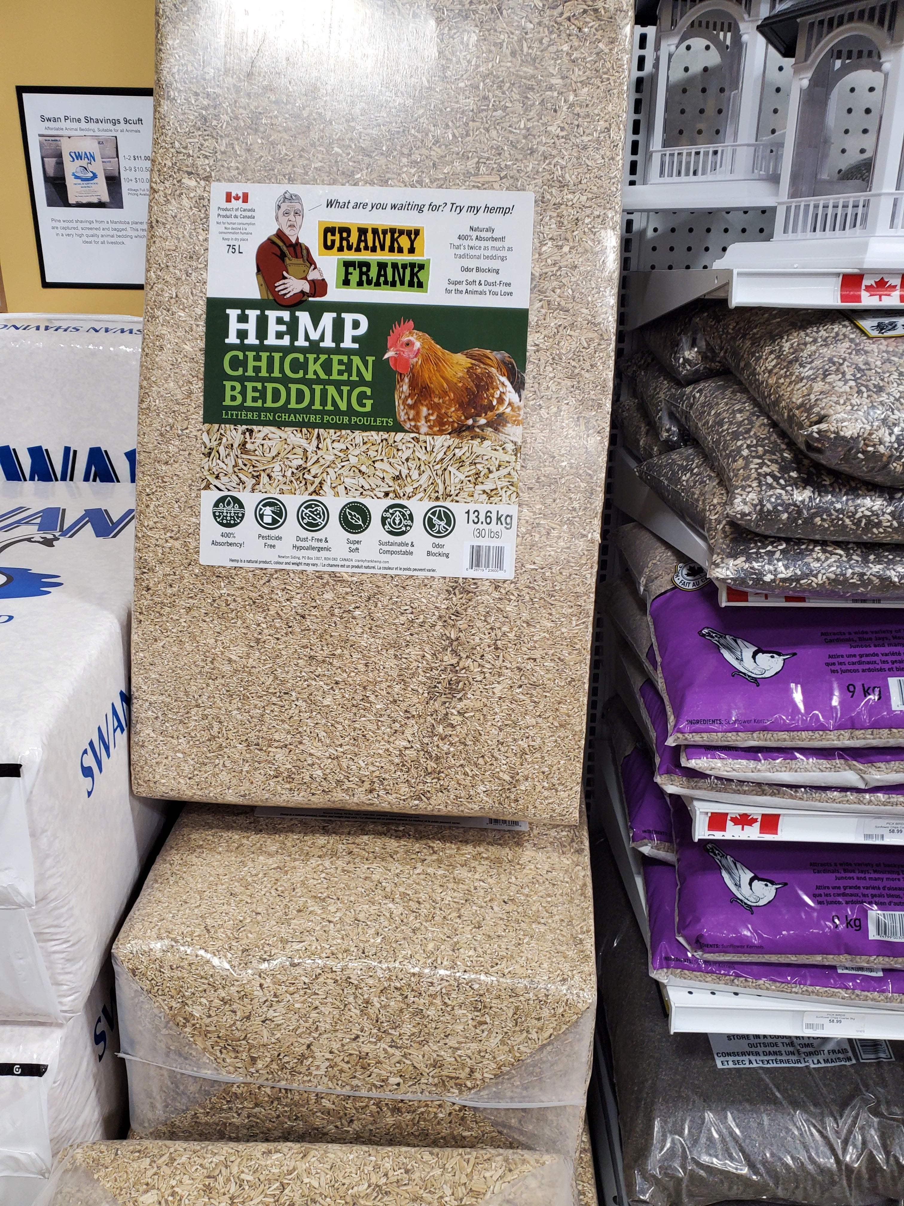 Stack of Hemp Chicken Bedding Cranky Frank at Canvasback in Manitoba