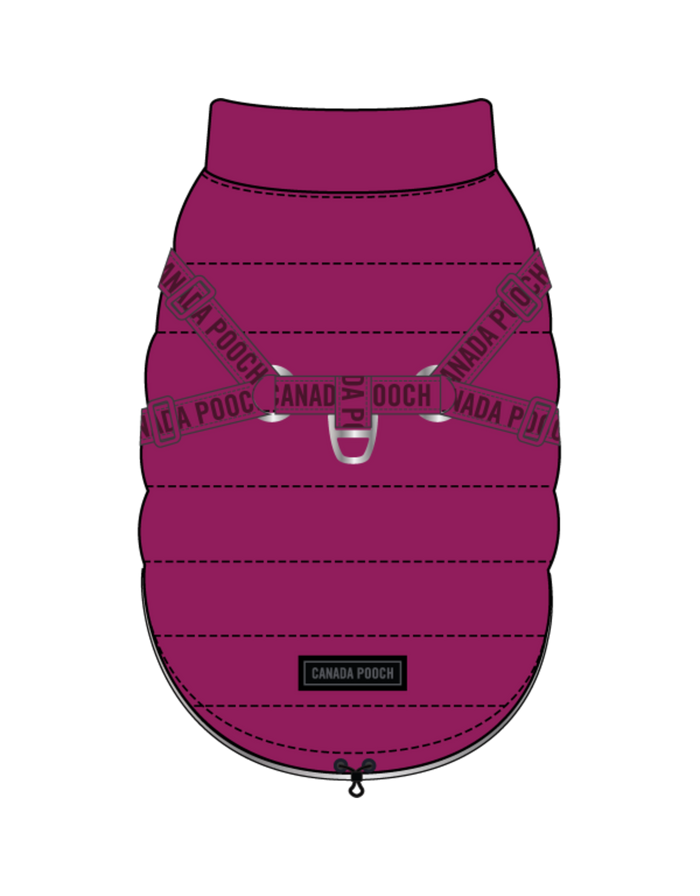 This new and stylish 2-in-1 winter puffer dog jacket with a built-in harness offers comfort and control for seamless winter walks!
