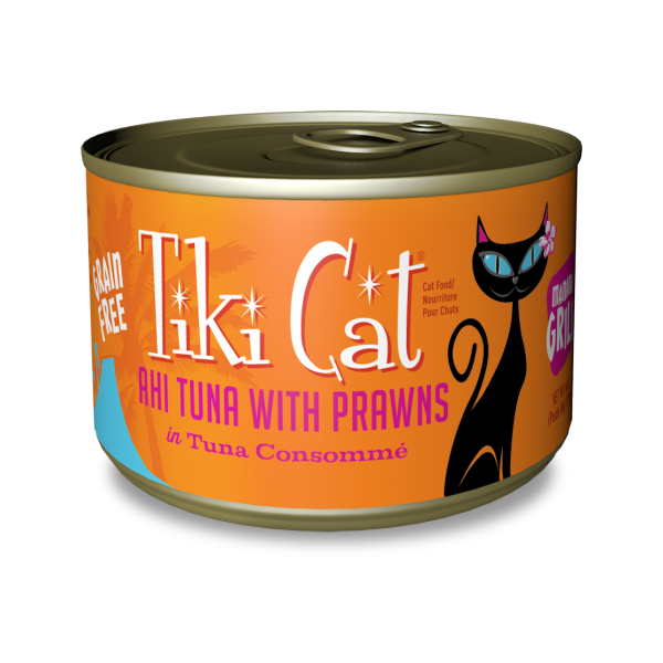 Tiki Cat Grill recipes give cats their seafood fix with indulgent flaked fish recipes garnished with shellfish. They contain real, recognizable ingredients that are high protein and grain free because cats are carnivores. Tiki Cat Manana Grill features wild-caught ahi tuna topped with real, whole prawns in a succulent tuna consommé. Tiki Cat Grill is complete and balanced for all life stages and provides high moisture to give cats the supplemental water they need.