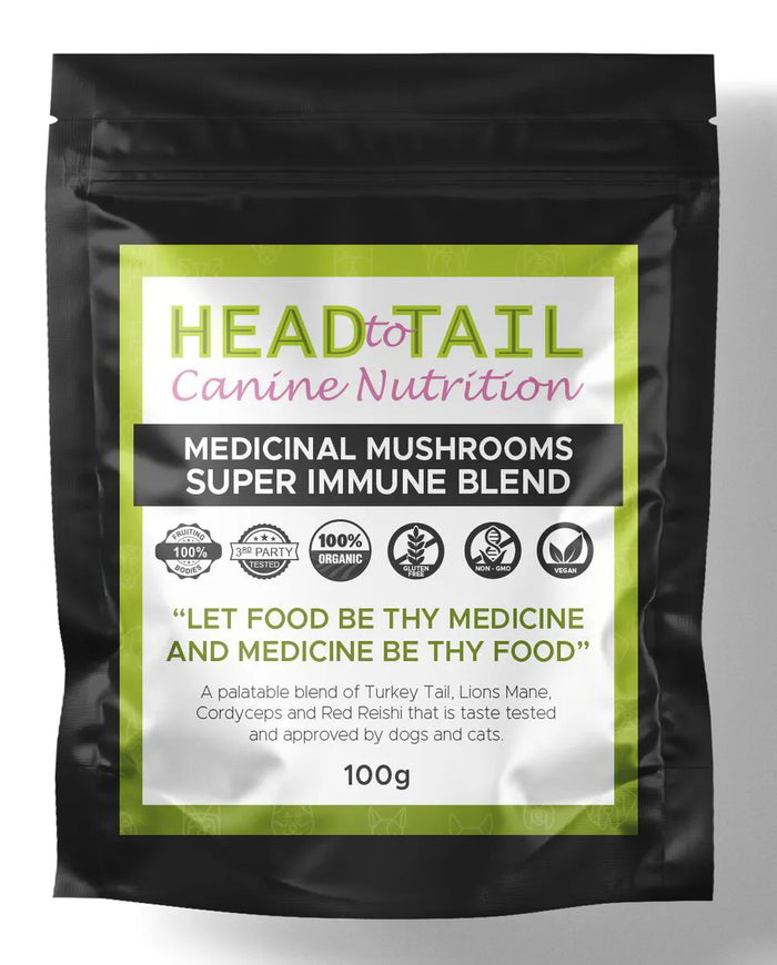 Head to Tail Canine Nutrition only uses 100% organic fruiting bodies which are rigorously tested and guaranteed for active compounds.