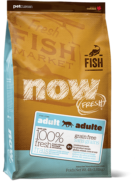 NOW FRESH™ Grain Free Fish Recipe for Adult Cats is made with 100% FRESH trout, salmon, herring, and 100% fresh Omega 3 & 6 oils from coconuts and canola. NOW FRESH™ Grain Free Fish also features zero grains, gluten, wheat, beef, corn or soy. Zero rendered meats, by-products or artificial preservatives.