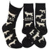 A pair of black and white socks from the Farmhouse Collection displaying various goat designs with a farm inspired sentiment that reads "Goat Obsessed." Socks feature a one size fits most design made with cotton, nylon, and spandex. Our Goat Obsessed socks come with a header card and a clear plastic hanger for display. A fun farm-themed gift perfect for everyday self-expression.