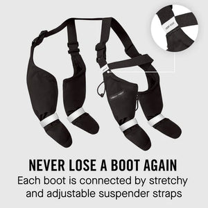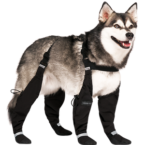 These boots provide secure paw protection and extended leg coverage. They are adjustable and connected, which means you'll never lose a boot again. With water-resistant fabric, this extended leg coverage protects against snow, salt, and mud. The non-slip rubber soles ensure your pup can walk confidently, and reflective velcro straps for visibility make night time walks that much safer.