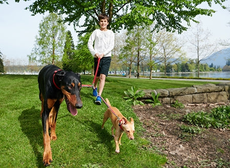 The Bungee Coupler acts as a handy shock-absorbing lead that eases the impact of a pulling dog and aids in avoiding the pains of tangled leashes when walking more than one dog. Our Bungee Coupler pairs perfectly with our Ultimate Pulling Harness if you skijor, bikejor or canicross.