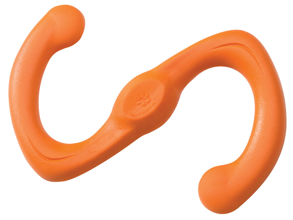 Flexing to twice its length during tug-o-war, this S-shaped dog toy is a favorite among pets and their people. The smart design makes it fly far and dogs love to carry it around in their mouths as it's lightweight but tough. Great for fetch or flinging, Bumi is one of our most beloved toys.