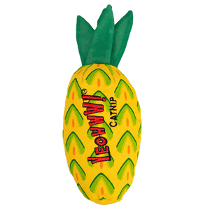 The fifth and largest fruit in the Yeowww! Catnip line of cat toys, the pineapple crushes the competition with 1.45 ounces of our special 100% organically grown catnip – no fillers and no chemicals. All this mouthwatering goodness is packed into a colorful and durable cotton twill cover that cats can really sink their teeth and claws into. And with crinkly leaves to add texture and sound, this pineapple delivers a sweet punch of fun!